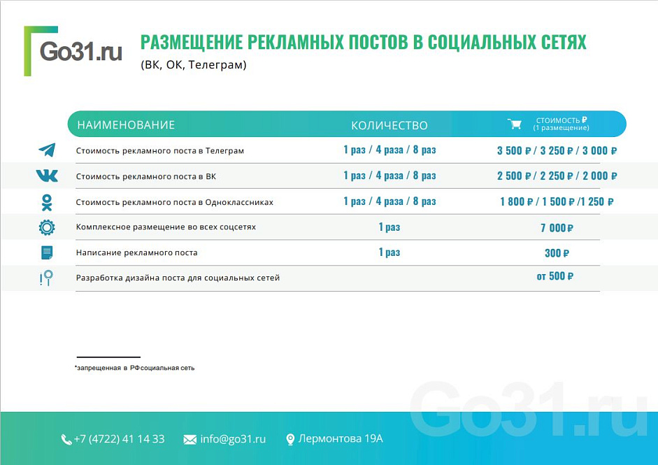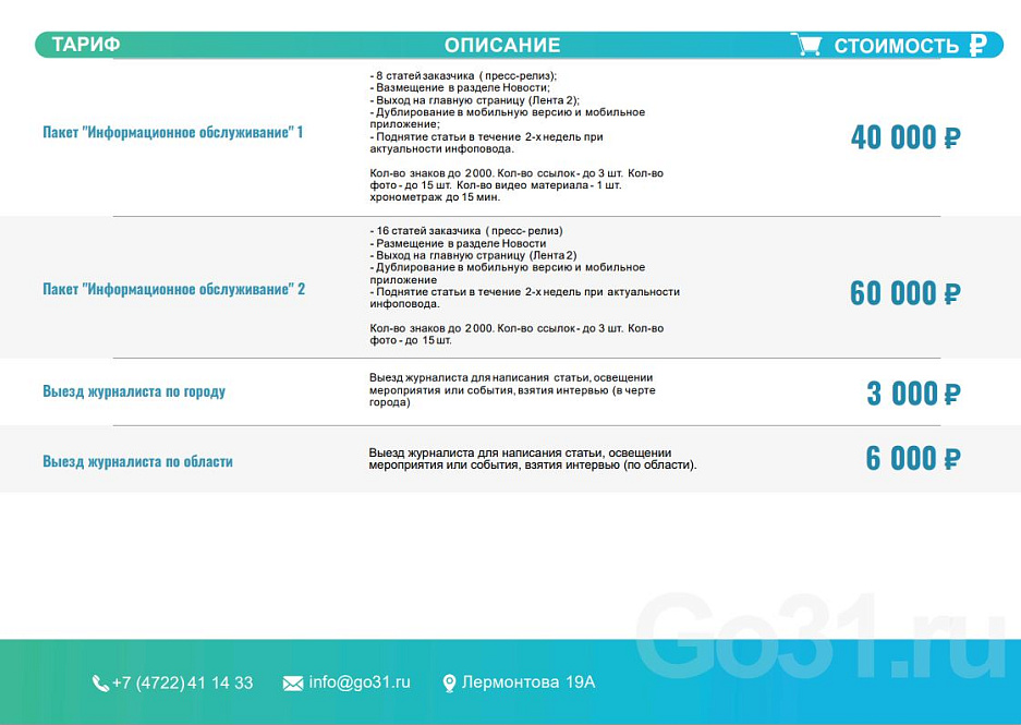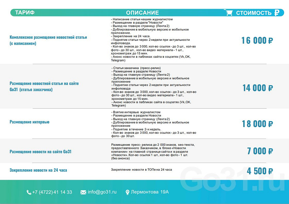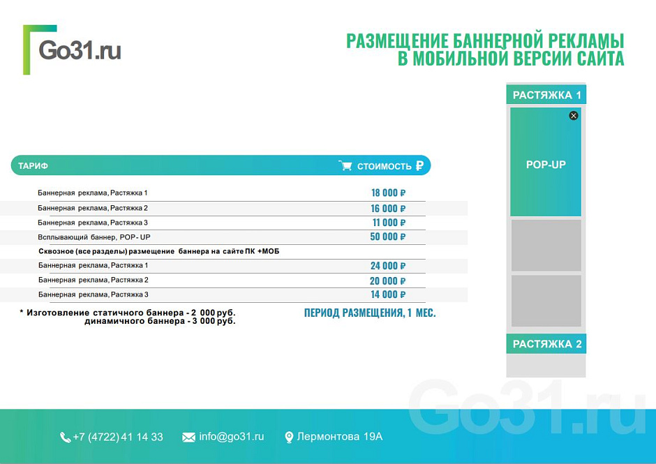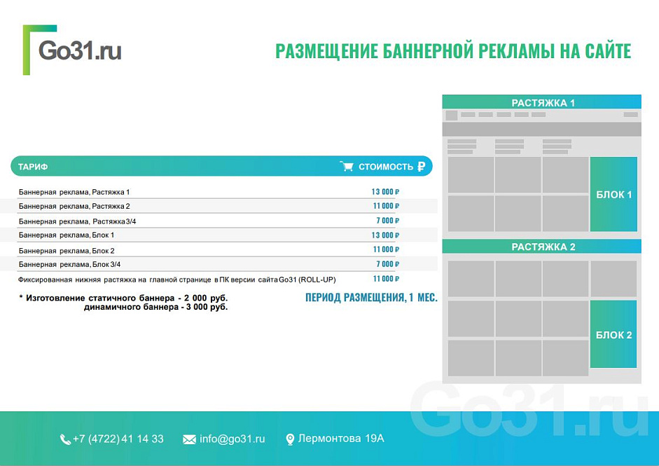 Размещайте свою рекламу на сайте Go31, и ваша компания станет заметнее!